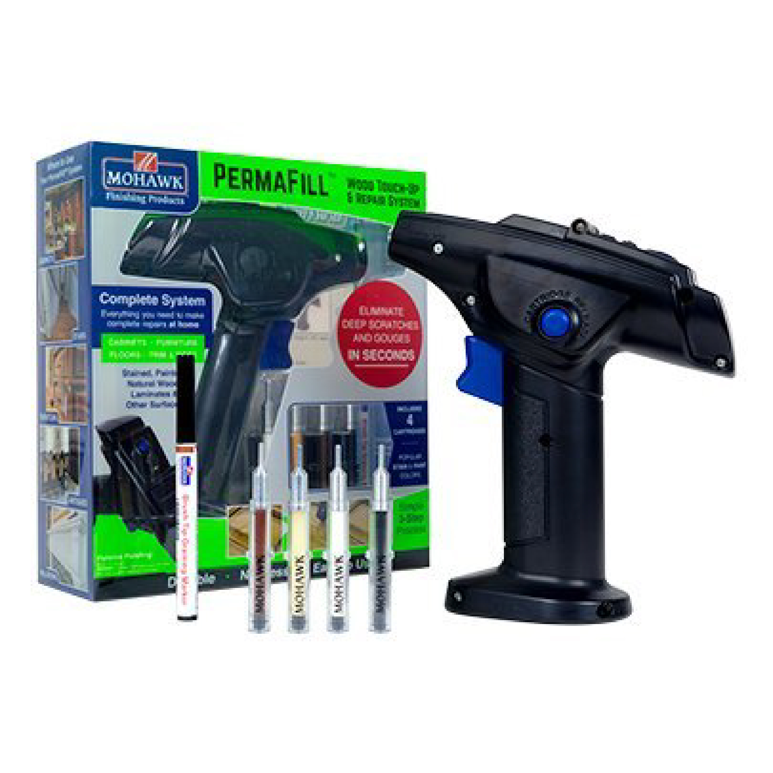 The durable, easy-to-use solution for wood repairs. Any wood or laminate can be repaired with the PERMAFILL™ System. PERMAFILL™ works on stained, painted and natural wood and laminates, as well as other surfaces. The simple 3-Step process allows you to repair deep scratches and gouges in seconds. No messy putties, sanding, or additional tools are required.