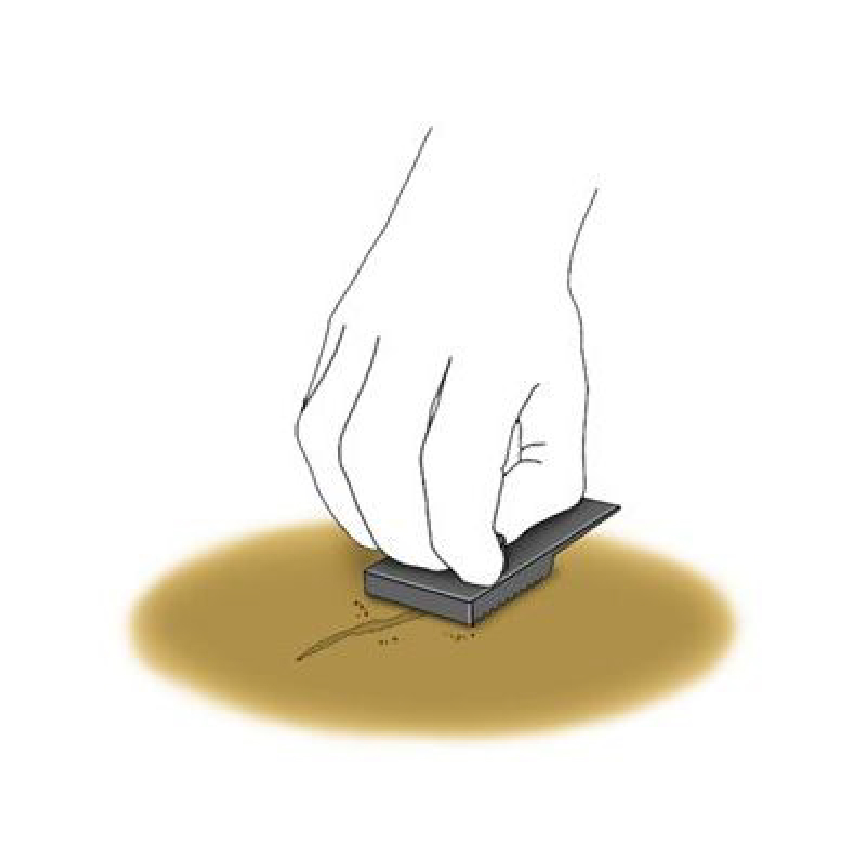 STEP 3: Allow the fill to cure (this will take less than 30 seconds). Remove the file from PERMAFILL™ Dispenser and gently remove the excess material with the special levelling tool until the repair is level.